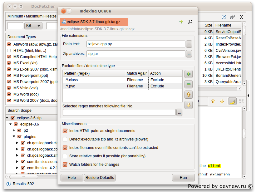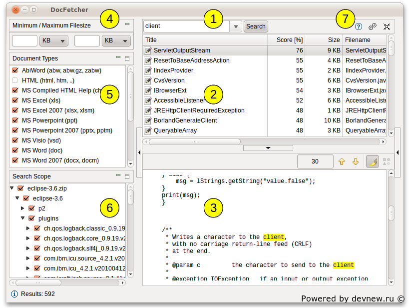 Приватность: DocFetcher не собирает ваши личные данные, точка. Можете свободно проверить исходный код.